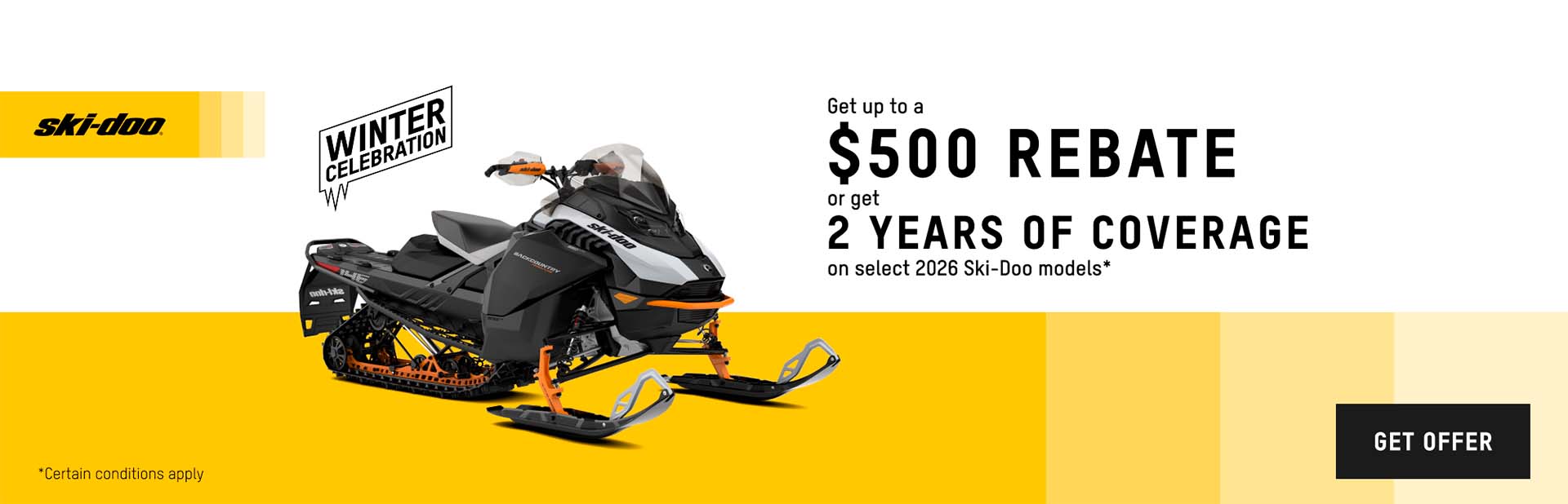 Get up to a $500 rebate or get 2 years of coverage on select 2026 Ski-Doo models